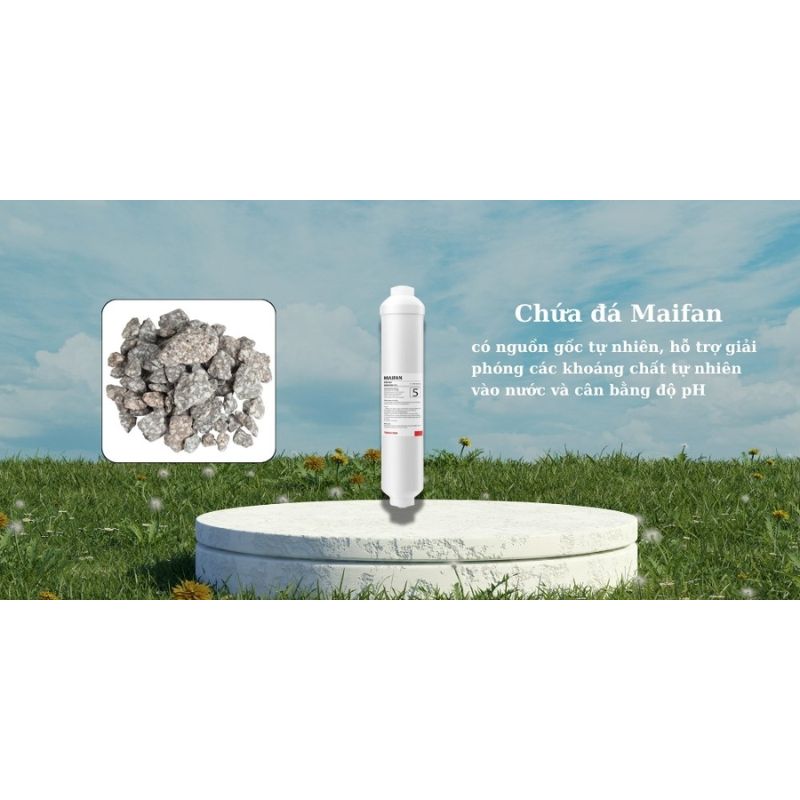 Cấu tạo lõi lọc đá Maifan là vật liệu tự nhiên, không chứa hóa chất độc hại nên rất an toàn cho sức khỏe. Khi nước đi qua lõi lọc, các ion khoáng chất tự nhiên từ đá Maifan như canxi, magie, kali… sẽ được giải phóng và hòa cùng nước sau lọc. Lõi này còn có khả năng cân bằng độ pH trong nước, giúp nước trở nên mềm mại hơn, dễ uống hơn và tốt cho sức khỏe.