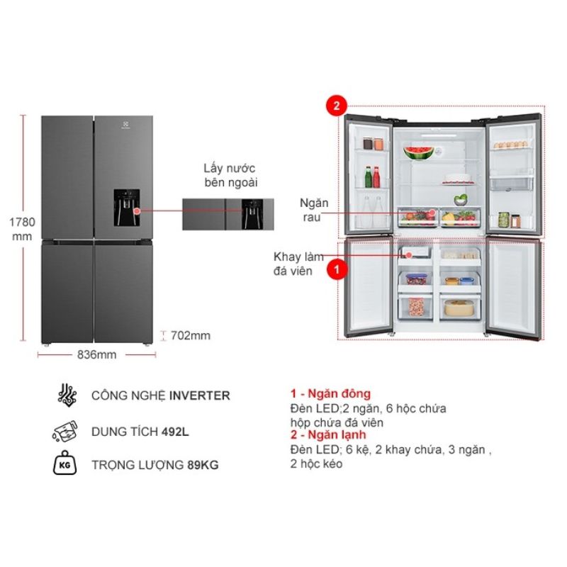 - Công nghệ EvenTemp đảm bảo nhiệt độ ổn định, thực phẩm tươi lâu
